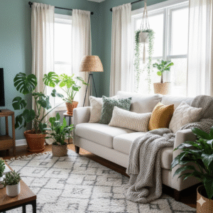 - Switch to soft furnishings like cushions, rugs, and curtains