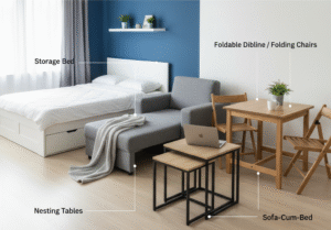 When working on low budget house interior design, multi-purpose furniture is a game changer. Consider items like: